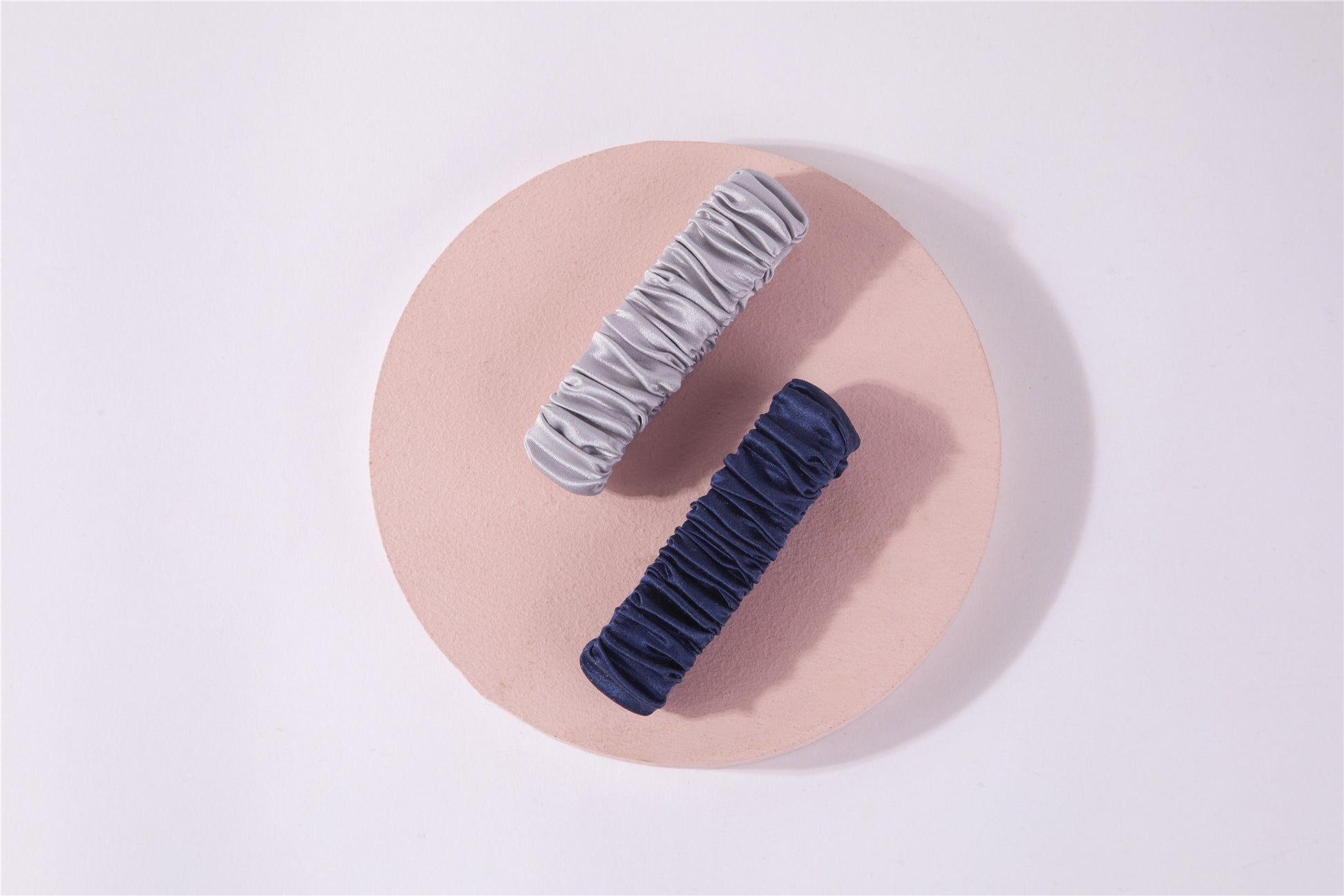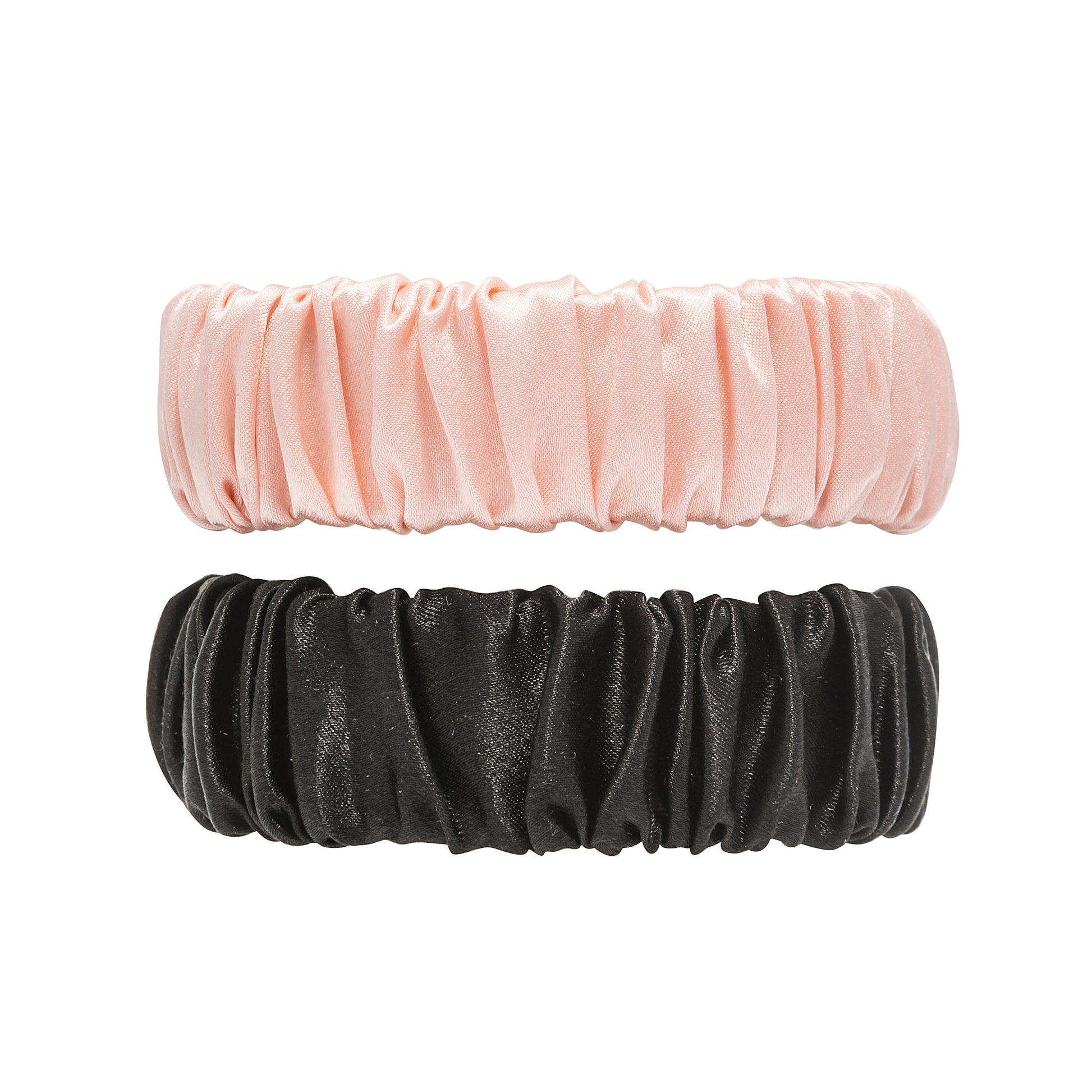 - This set includes: 2 silk scrunchies (choice of Midnight/ Cloud Silve or Ballet Pink/ Boba Black)
